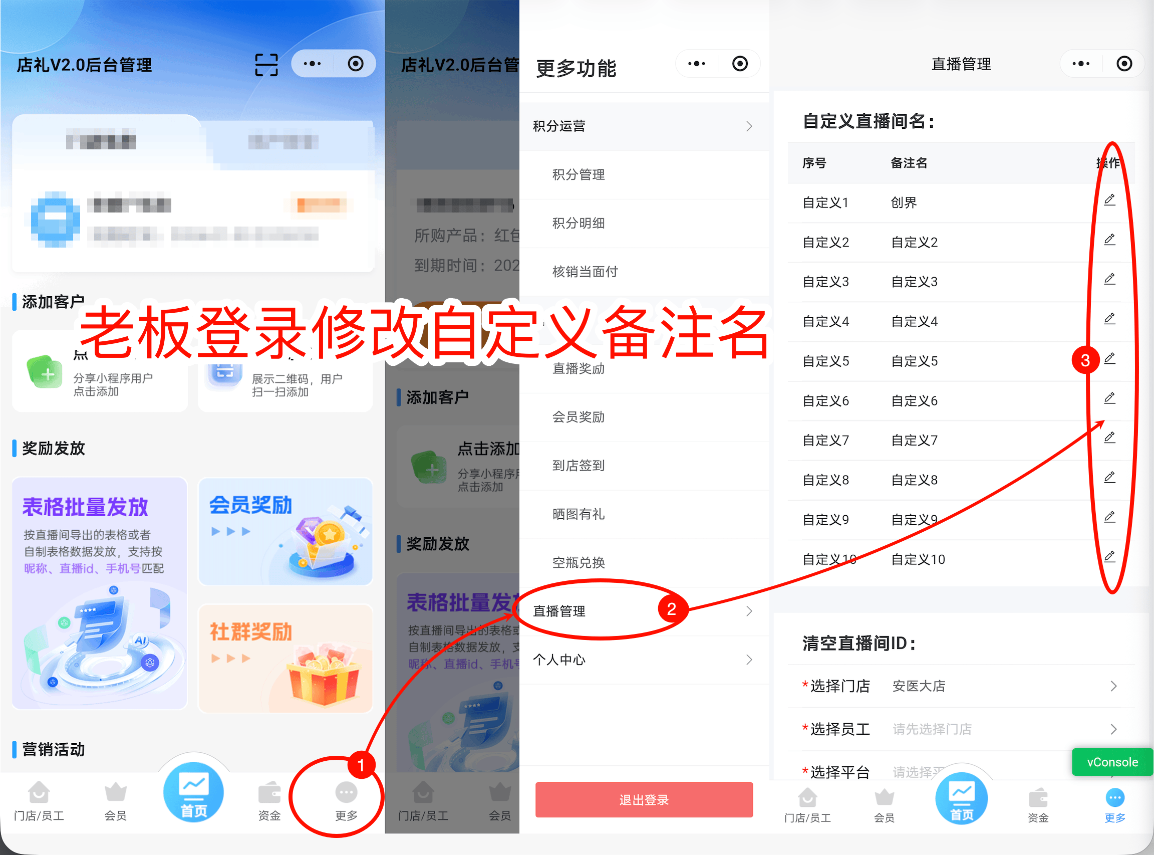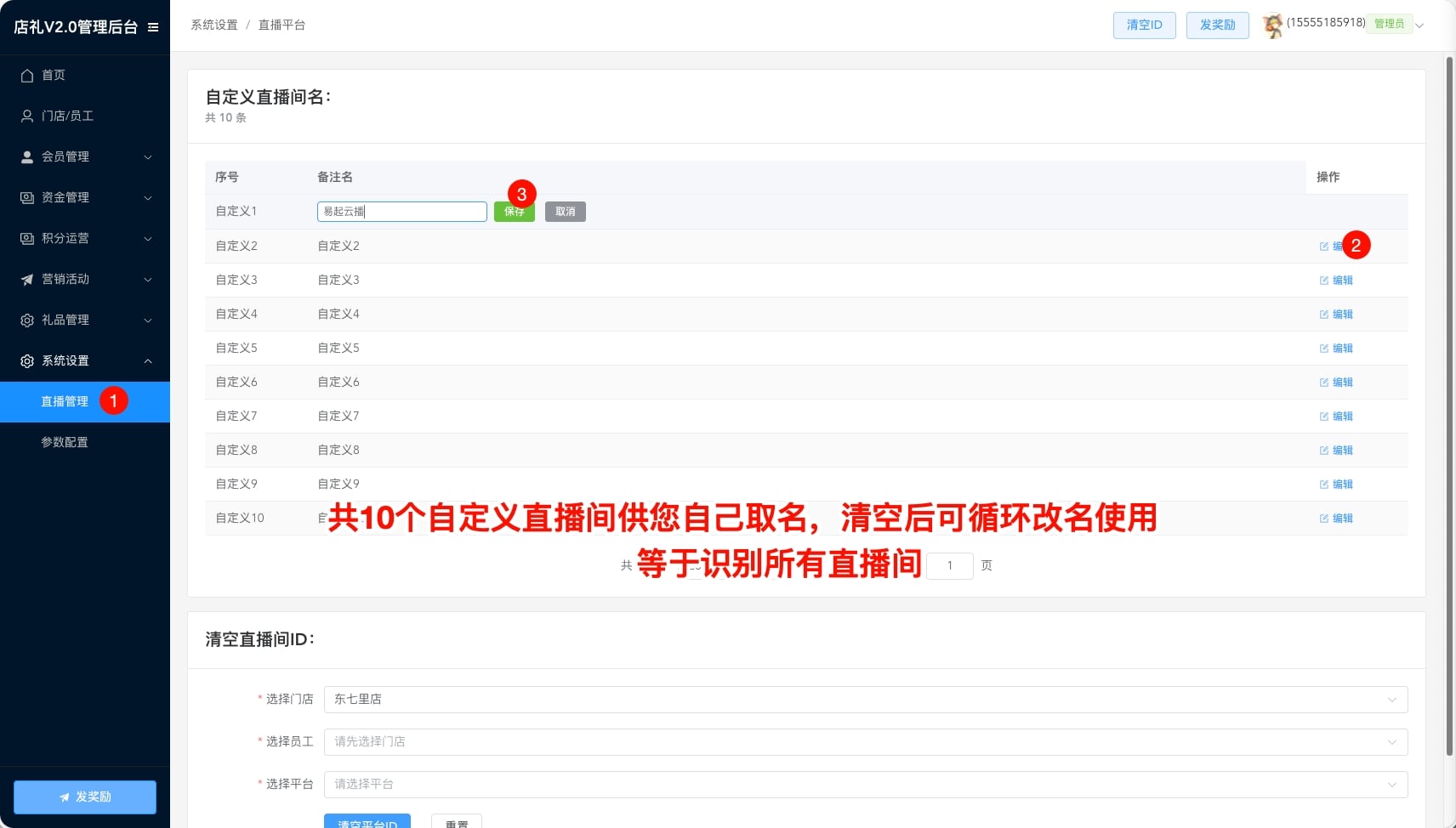 直播间自定义取名需要老板操作,员工操作不了