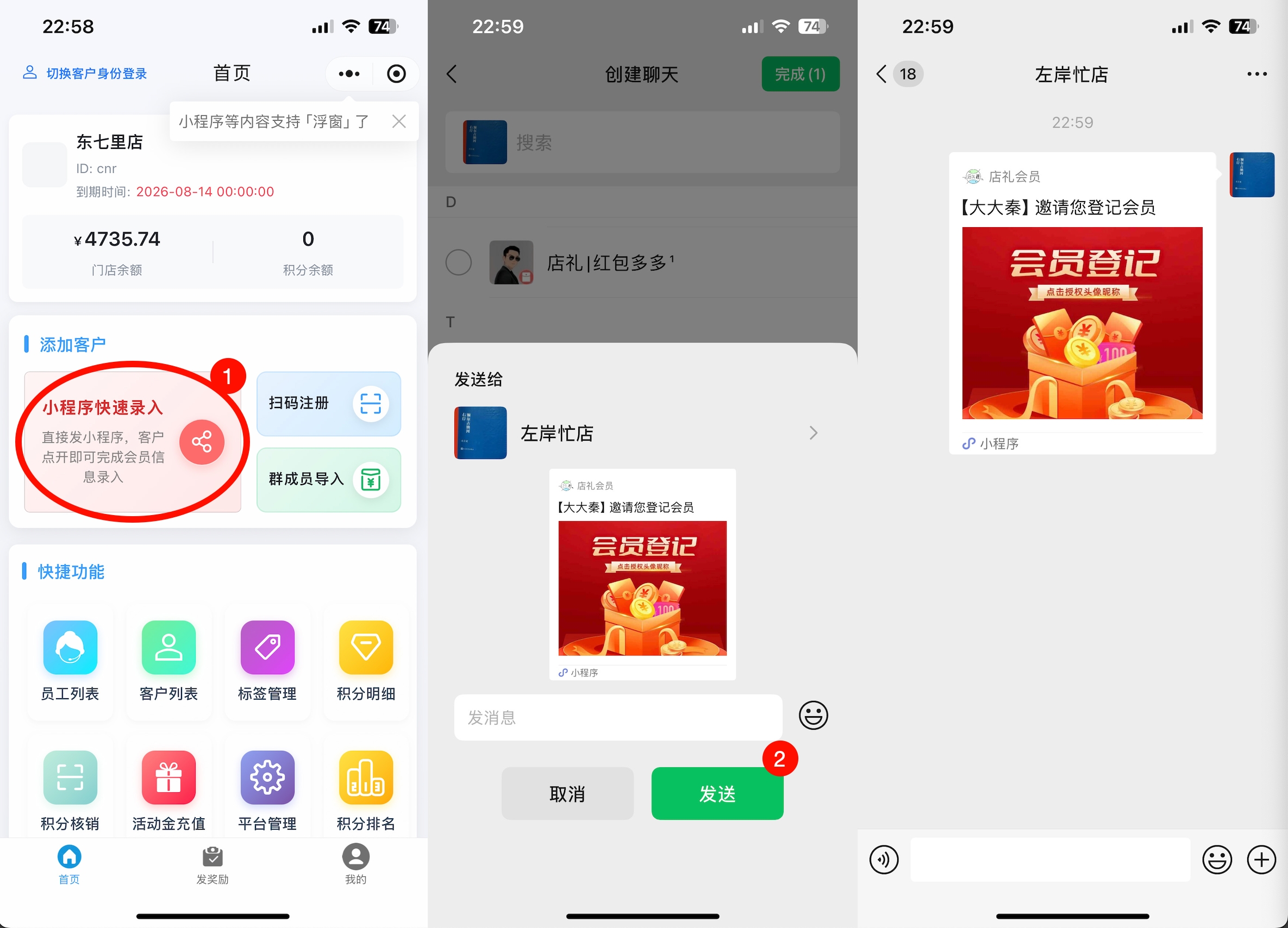 小程序首页 -> 小程序快速录入 -> 分享到群或者好友