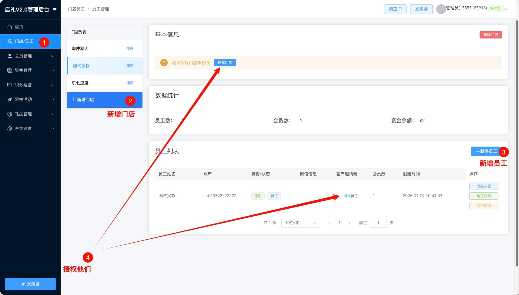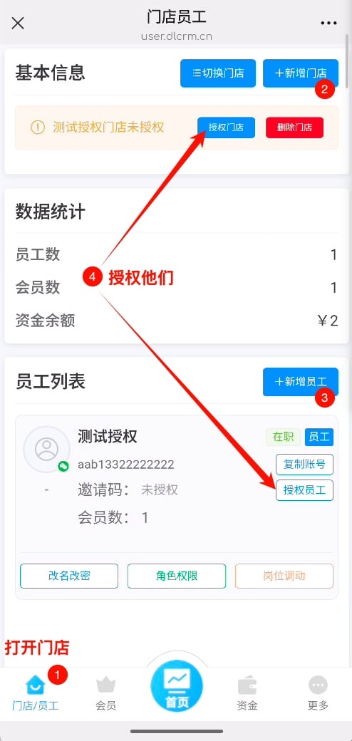 ❸ 添加门、员工,完成授权